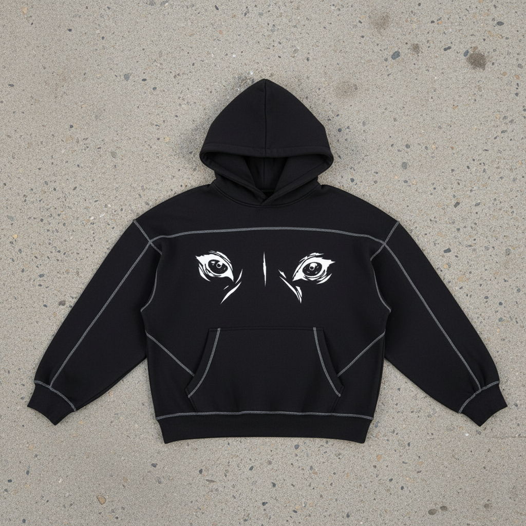 Cat eyes Stitched Boxy Fleece Hoodie